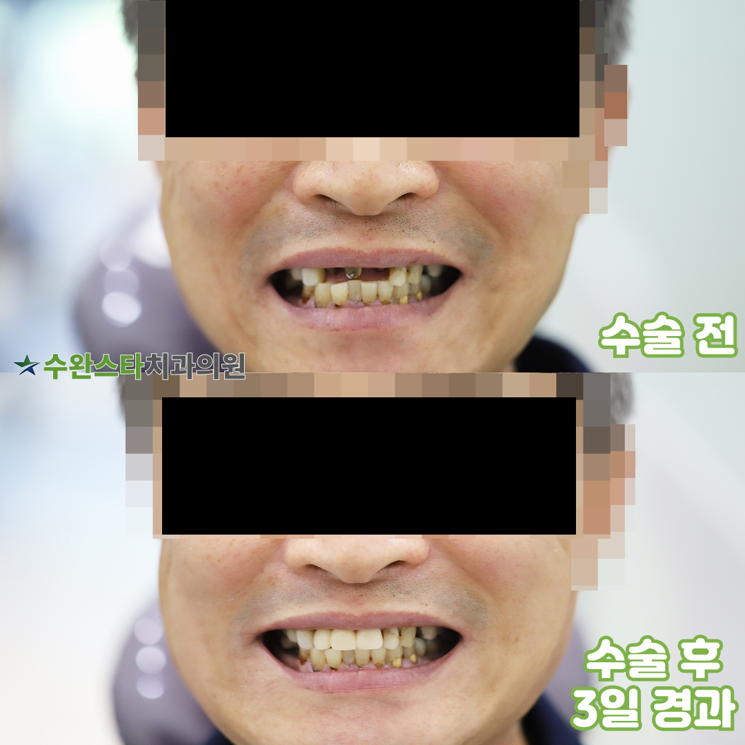 앞니 임플란트 수술 전/ 수술 후, 50대 남성(2024/6월 촬영)